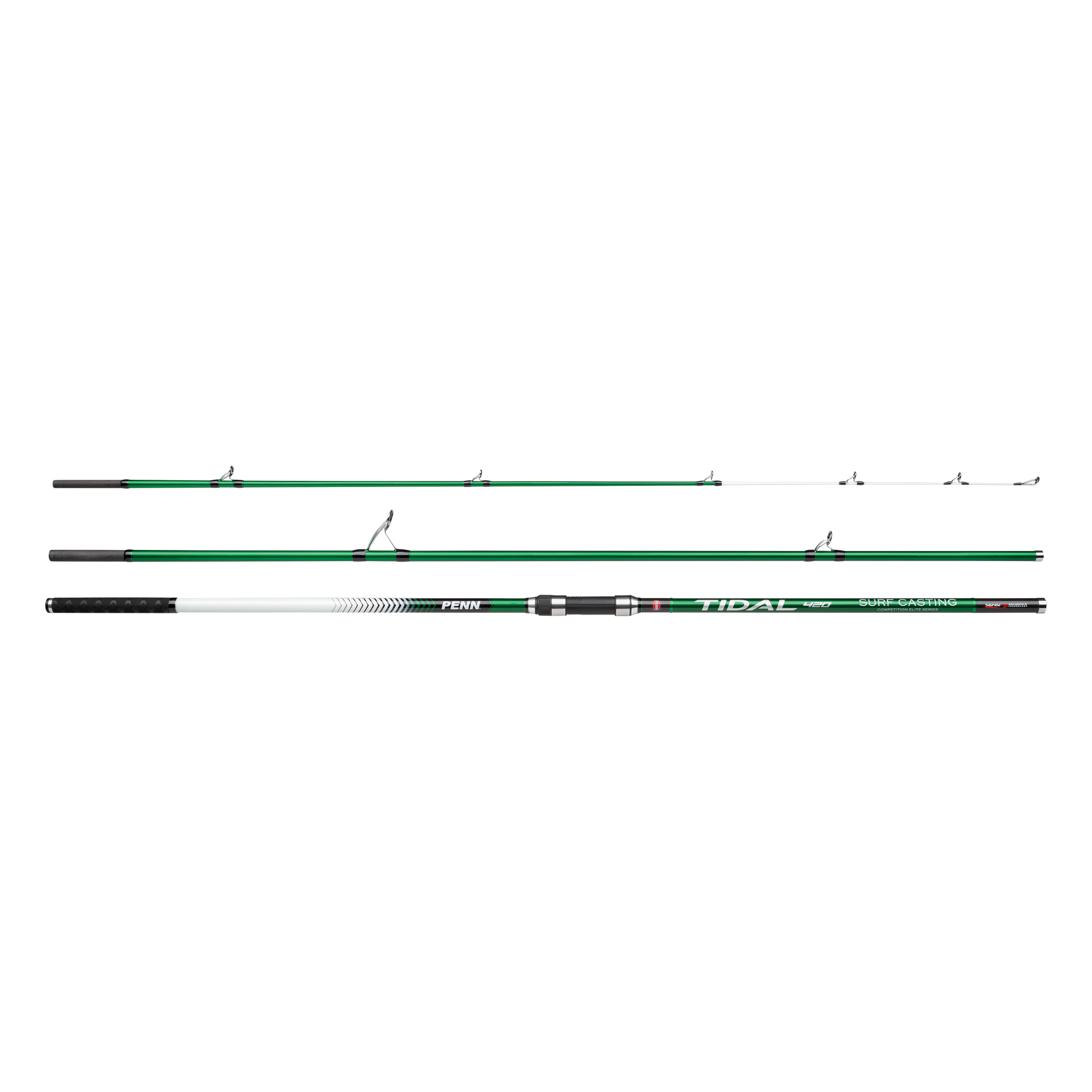 PENN Tidal ist die neue und exklusive Surfcasting-Modell von PENN. Tidal-Ruten bieten alles, was Sie zum Brandungsangeln brauchen: Superstarke, aber leichte und reaktionsschnelle 30T-Carbonblanks, die für beste Distanzeigenschaften ausgelegt sind, und alle Ruten sind mit einem Sensitip ausgestattet, um selbst kleinste Bisse zu signalisieren. Alle Blanks wurden in Zusammenarbeit mit Brandungsangelexperten in ganz Europa entwickelt, um Ihnen die bestmöglichen Blanks zu garantieren – ein unglaubliches Preis-Leistungs-Verhältnis. Die speziellen K-Typ-Führungen sind verwicklungsfrei und SW-sicher, sodass Sie auch bei Wind keine Probleme beim Werfen haben. Darüber hinaus sind alle Ruten mit einem bequemen Schrumpffoliengriff und einem speziellen Wurfgriff ausgestattet. Die Modell besteht aus vier einzigartigen Modellen, die an der Farbe zu erkennen sind – alle unterscheiden sich in Bezug auf die Leistung. Die metallisch-silberne PENN Tidal-Version (50-200 g) ist für leichtere Angelarten wie z. B. Strandangeln oder Angeln von einem Pier aus gedacht, bei dem kein schweres Gerät erforderlich ist. Die Versionen in Metallic-Grün (100-225 g) und Metallic-Blau (100-250 g) sind echte Allround-Brandungsruten, die unter allen Bedingungen eingesetzt werden können. Wenn es jedoch nur auf Distanz und Kraft ankommt, ist die Version PENN Tidal (100-300 g) in Metallic-Rot die Rute, die Sie brauchen, um die Arbeit zu erledigen.