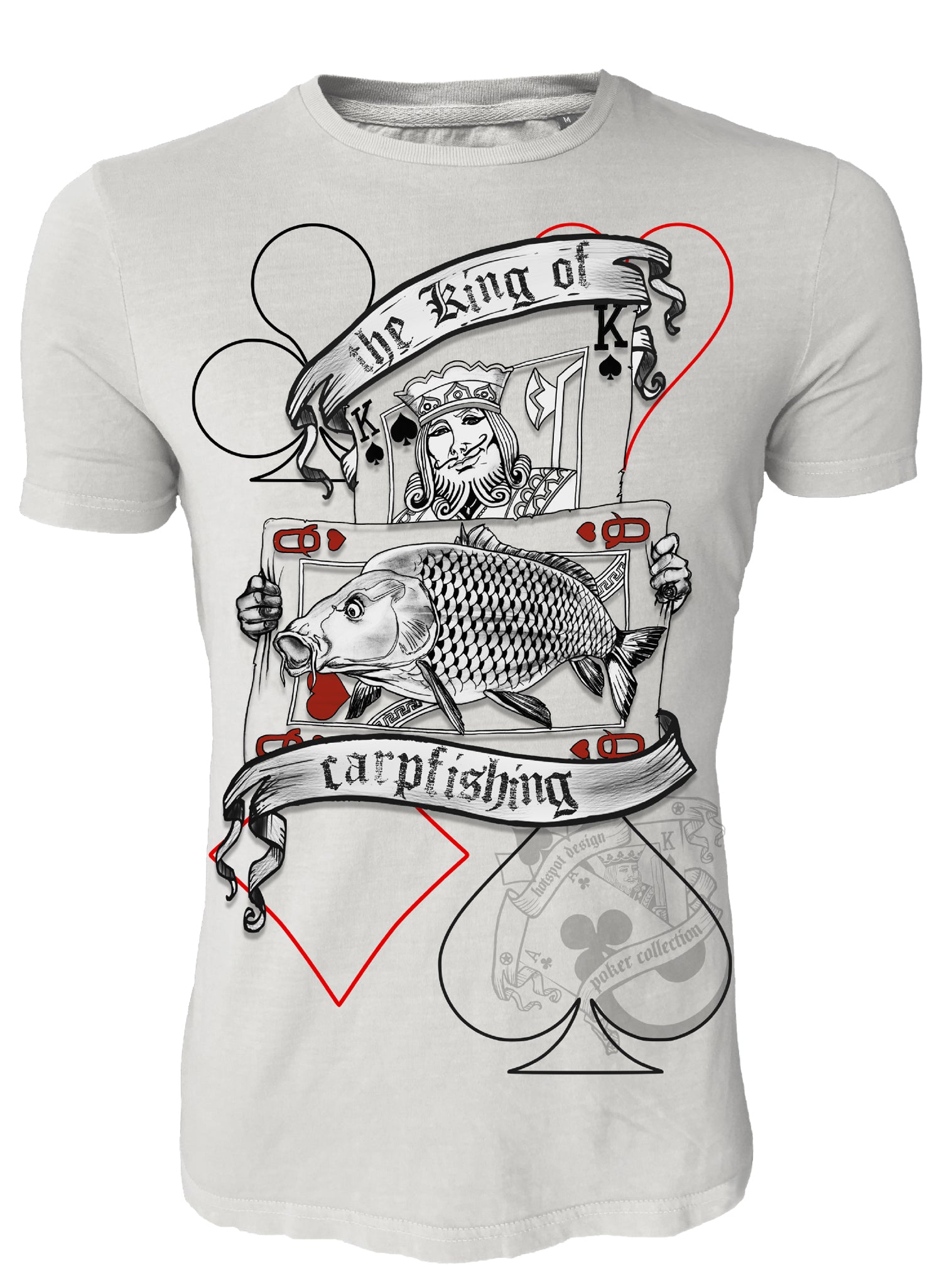 The KING OF CARPFISHING is based on the idea that the King card is taking on the hands the hearts Queen who is emphasized to be a carp, a sort of connection between the King and its love for the carpfishing discipline. The red color is realized in embossed printing and its effect is well visible.