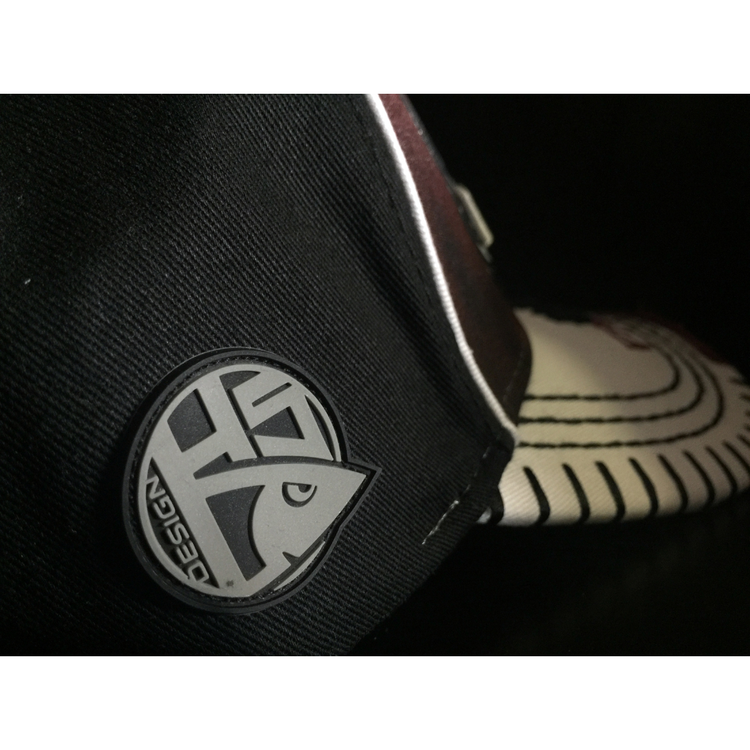 Visiera: al centro della visiera è presente una toppa rossa con bordi invecchiati, scritta “Hotspot” realizzata in ricamo 3d, scritta “Fishing Pike” in ricamo piatto, linee di cucitura della visiera ben visibili e realizzate in colore a contrasto (linee di cucitura nere ).