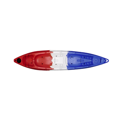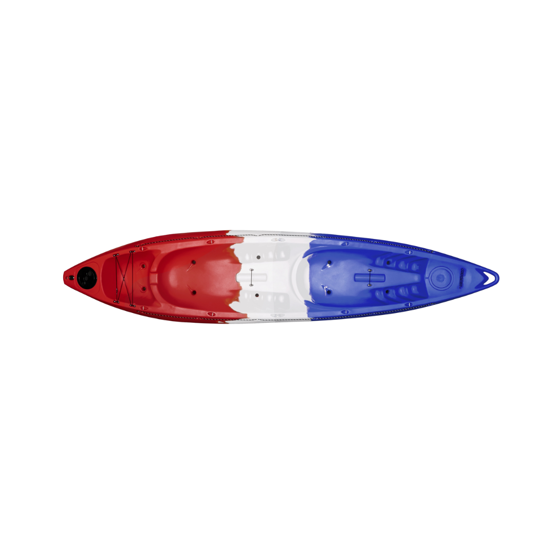 Il suo design con scafo allungato ospita comodamente due pagaiatori e offre spazio aggiuntivo al centro per un bambino o un animale domestico, rendendolo ideale per le uscite in famiglia sull’acqua.
