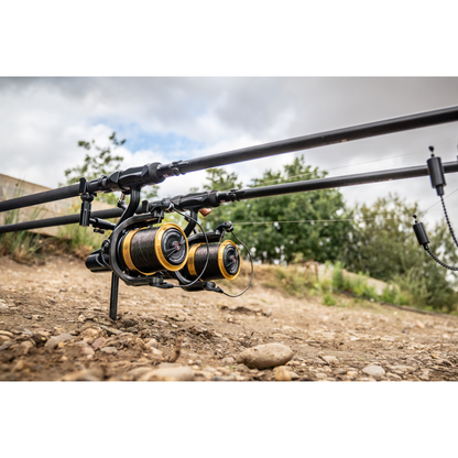 Carretilha Big Pit para pesca de carpa com design retrô.